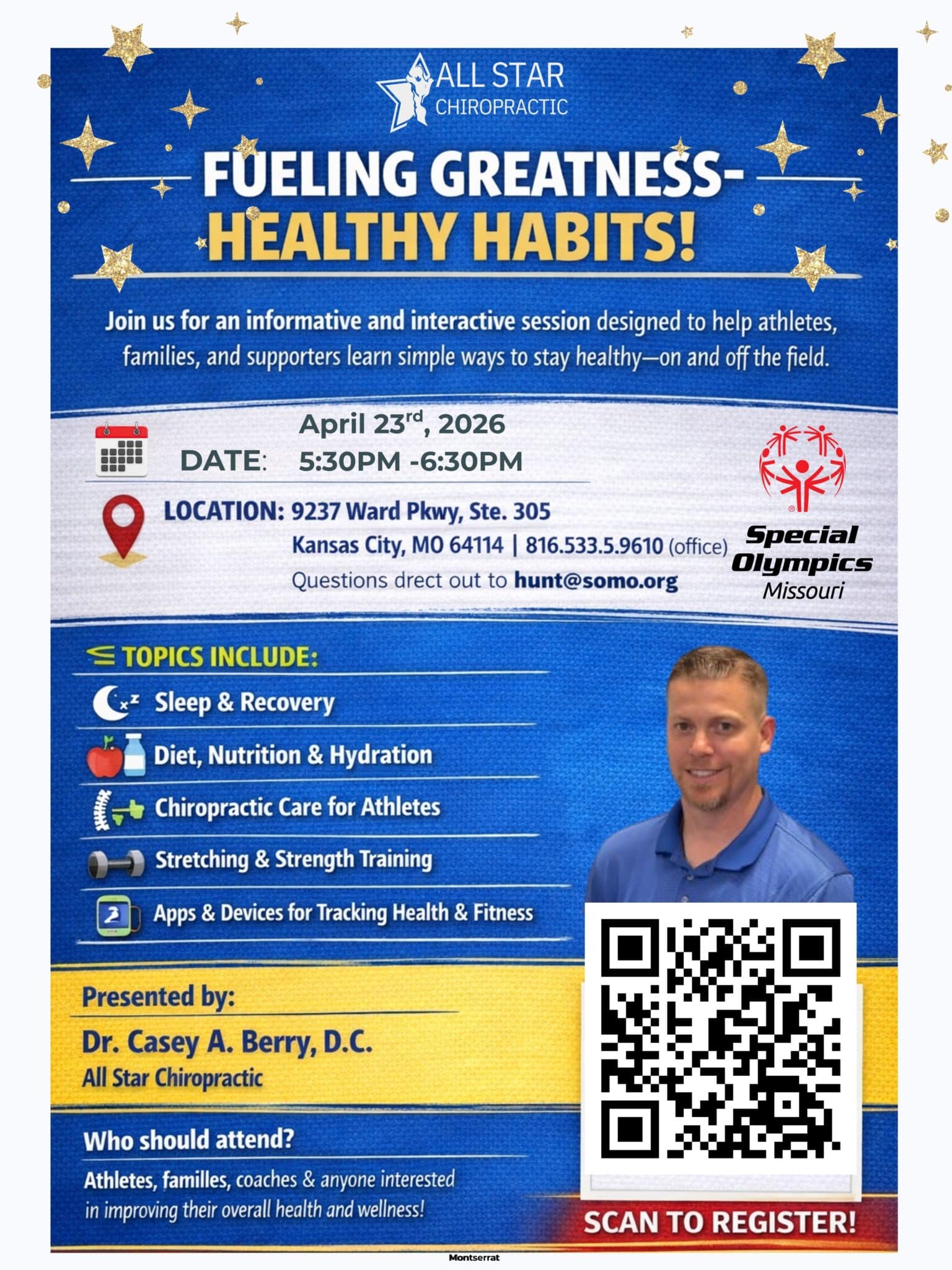 Join us for our next Off the Field converstion: Fueling Greatness – Healthy Habits! 💪 We’re bringing athletes, families, and coaches together for a fun and informative evening focused on simple ways to stay healthy—on and off the field! 📅 March 24⏰ 5:30 PM – 6:30 PM📍 9237 Ward Pkwy, Ste. 305Kansas City, MO 64114… |
