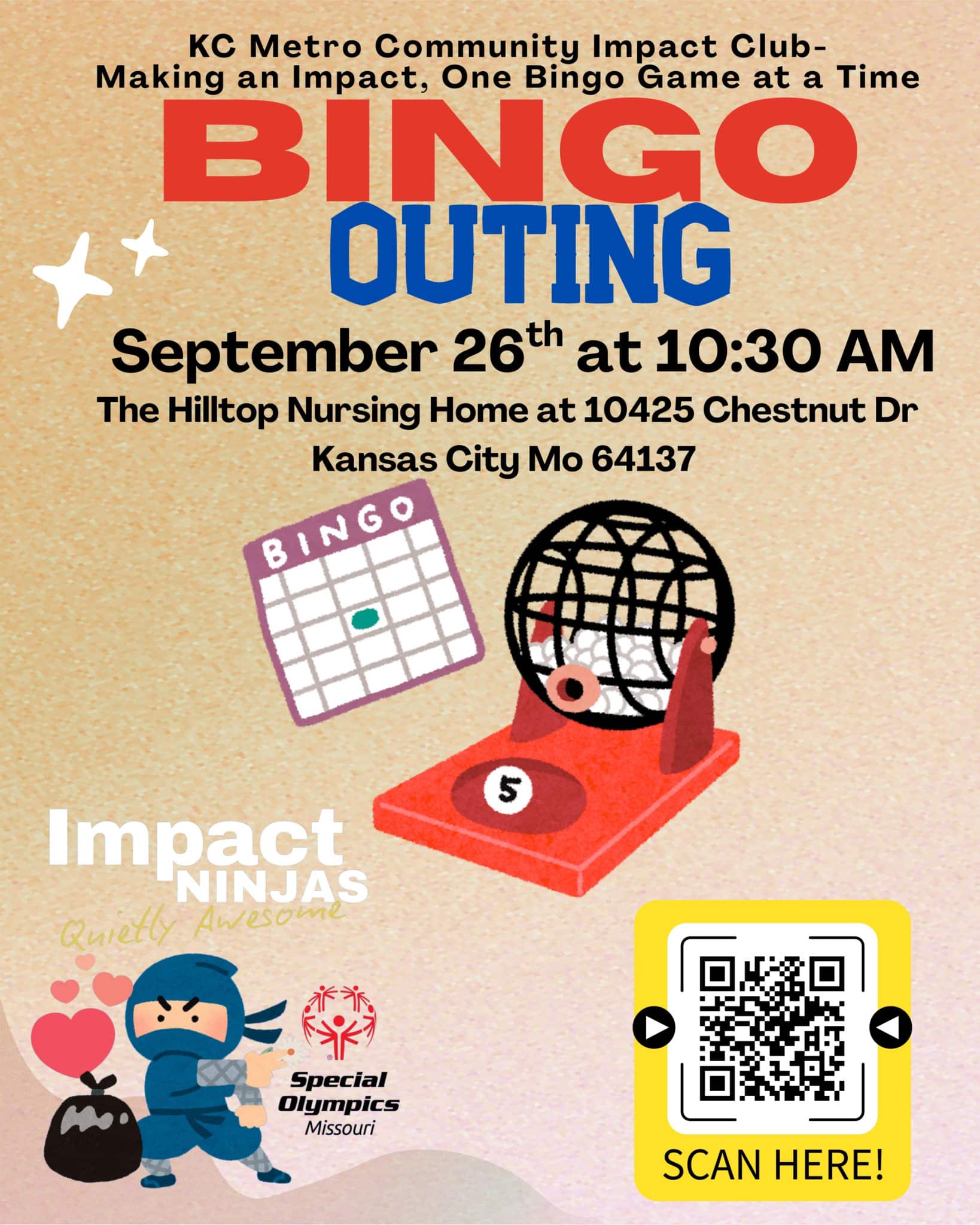 Special Olympics Missouri’s KC Metro Community Impact Club is hosting a Senior Outing Bingo Day on Friday, September 26th at 10:30 AM – and we’d love for our athletes to join us! 💙