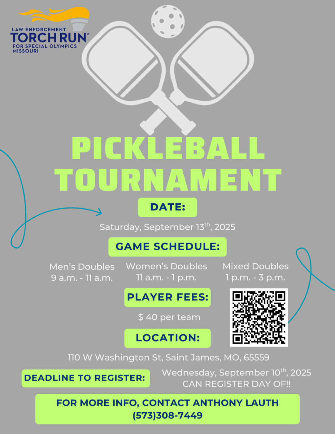 Join us for a Pickleball Tournament Fundraiser in Saint James, MO on September 13! Compete in men’s and women’s doubles or mixed doubles and support a great cause.
