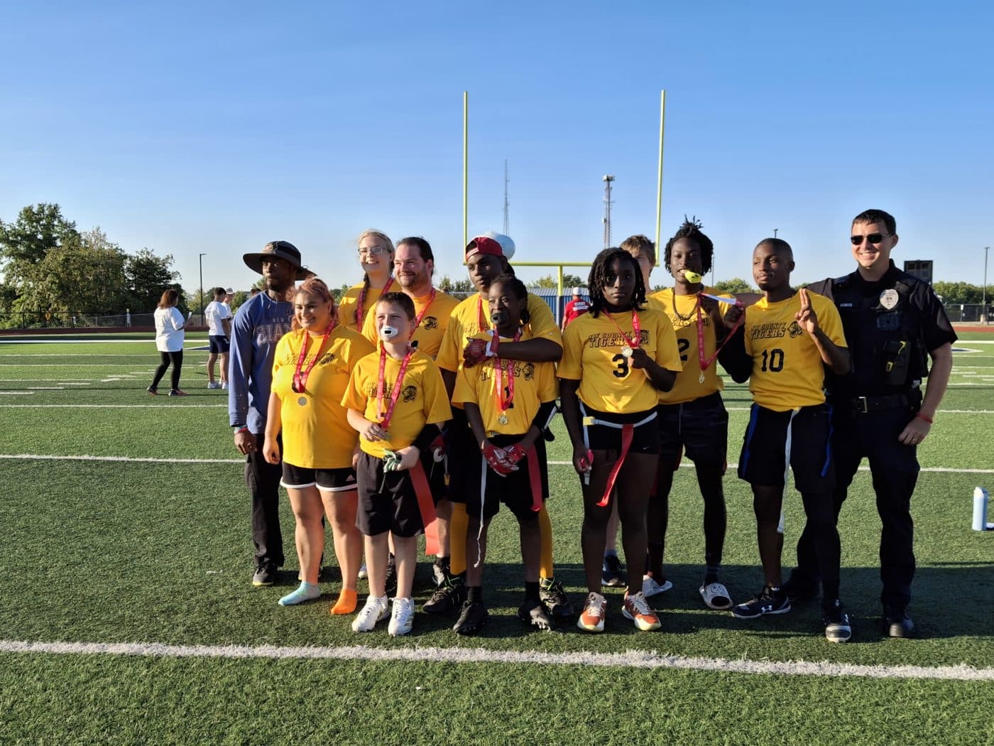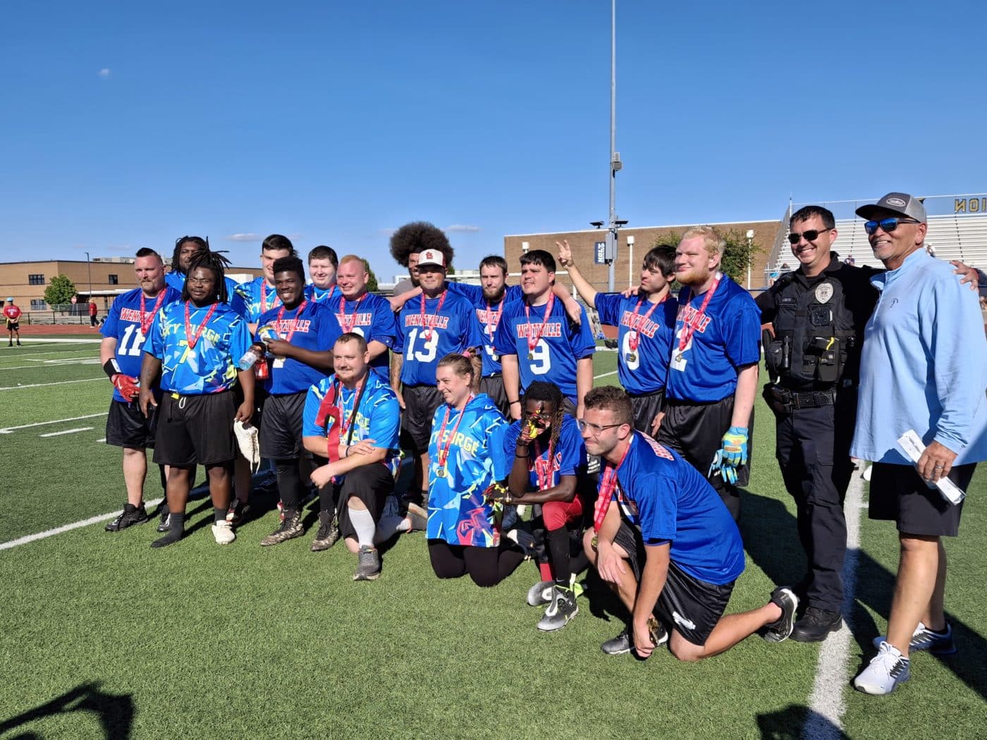 SOMO hosted teams from the St. Louis Metro Area, the Southeast Area, and Mascoutah, IL for the Area Flag Football Tournament on Sunday, September 7, at Holt High School in Wentzville. A big thank-you goes to the Lindenwood University women’s lacrosse team and coaches for volunteering, and the Liberty High School football players for refereeing. During the event, SOMO also received an incredible $11,500 check from Fore Love of the Game, presented by football Event Managers Phil McHenry and Angie Clark, to support future STLM events and USA Games athletes. It was a beautiful day of football and community support!